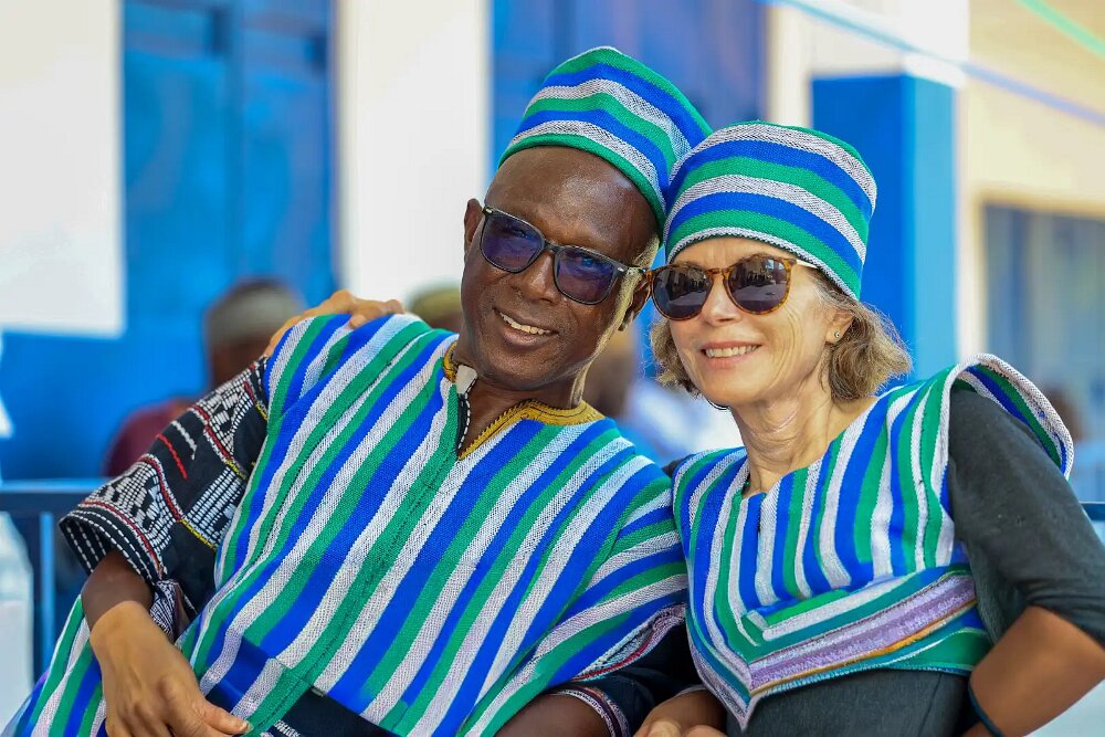 Clinton and Cindy Nofziger, SfS founder, at reception, dressed in outfits made for us for the occasion.